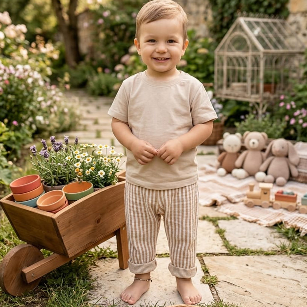 Pantalon en gaze de coton, pensé pour accompagner bébé au quotidien avec confort et légèreté. Sa matière douce et respirante en fait une pièce idéale pour toutes les saisons, parfaite pour laisser bébé libre de ses mouvements tout au long de la journée.