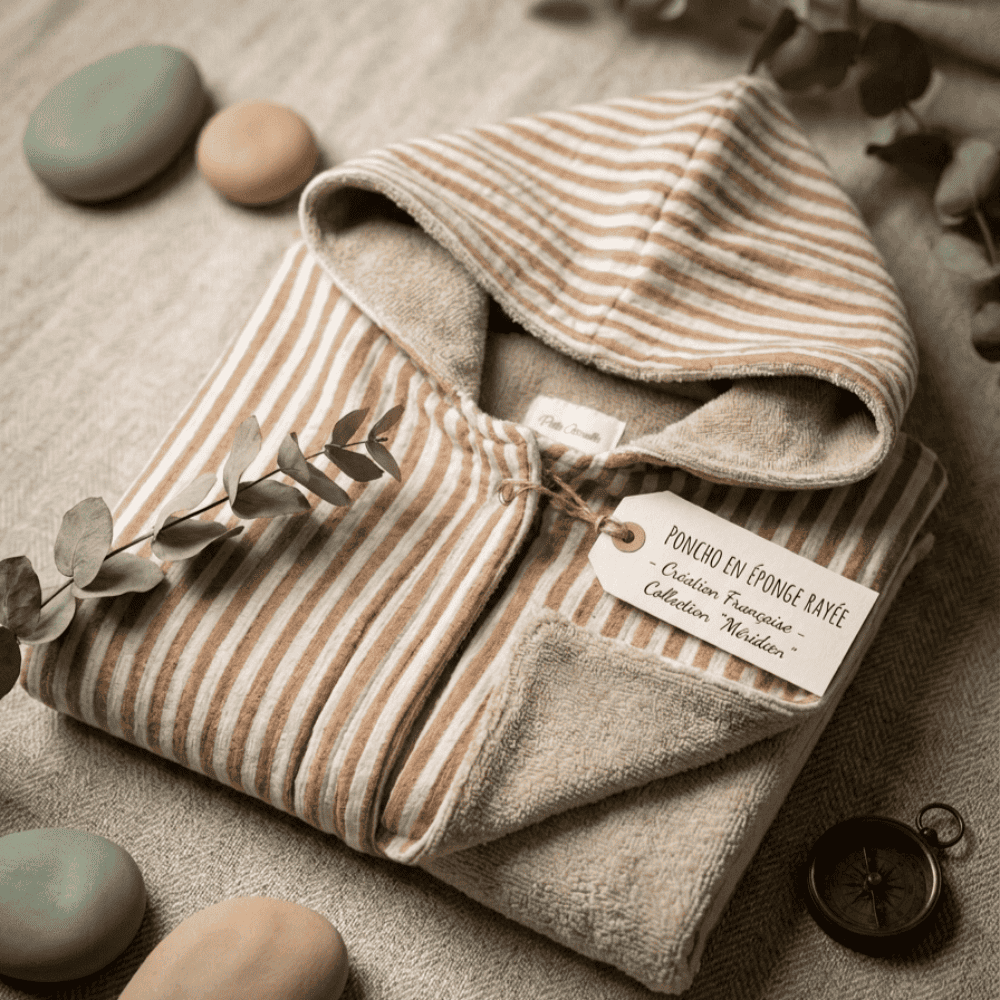 Poncho de plage en gaze de coton douce et doublure éponge, idéal pour envelopper bébé après la baignade. Léger, confortable et facile à enfiler grâce à sa capuche et sa fermeture sur le devant, il accompagne les journées à la plage avec style et douceur. Lavable en machine à 30°C, séchage à l’air libre.